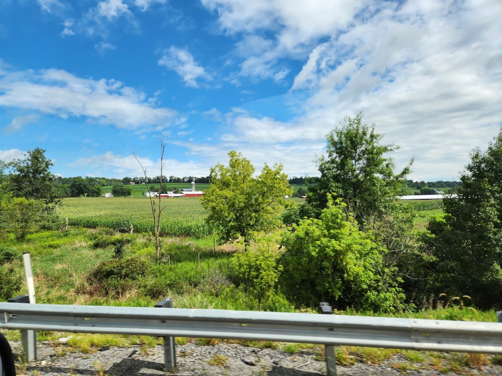 Driving through Pennsylvania is mountains and farms – just some beautiful scenery. And I couldn’t resist taking a photo of the GPS when we were taking this road.
