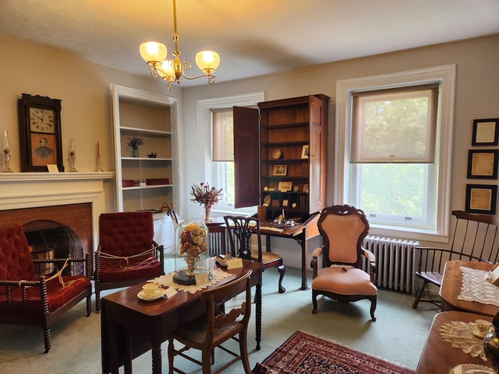 Some of the articfacts in the museum are above. That’s a Bicentennial ABC Quilt made by a local 2nd grade class in 1976. In the middle is a portrait of Simon Harper, in a frame he made of nails when he was in a rest home after his civil war service. On the right is a portrait of Lucy Winter Potter, one of the owner’s and also a great-aunt of Abraham Lincoln.