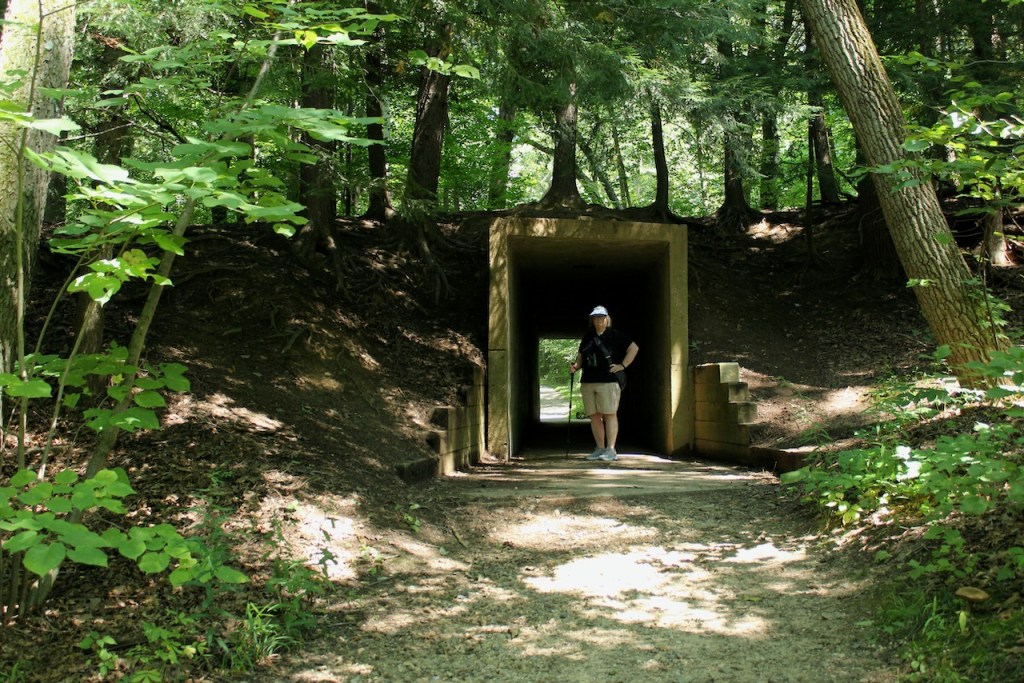That’s Trish standing in a tunnel that ran under the toboggan run that was set up each winter from the 1930’s until 1990. Kept the pedestrians off the course.