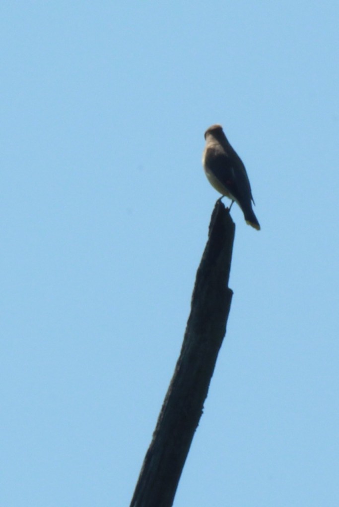 This is the wildlife we saw at this stop – swallow-tail butterfly, cedar wax-wings, Canada geese and great heron – nothing too exotic, but it was a beautiful day to be walking.