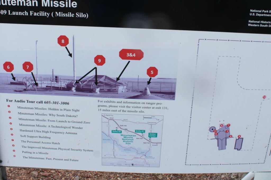 On the way out of the Badlands on Sunday 8/27, our first stop was the Minuteman National Historic Site. Those of you from New England might be asking why is there a Minuteman site in SD – they weren’t even part of the US when the Minutemen were a thing. Well, this is for the Minuteman missiles – the major part of that MAD (Mutually Assured Destruction) policy during the Cold War. In the 70’s and 80’s there were around a thousand missile silos scattered between North and South Dakota, Montana, Nebraska and Wyoming. The closer to the Canadian border the better, as we would be shooting over the north pole as the shortest distance to Russia.