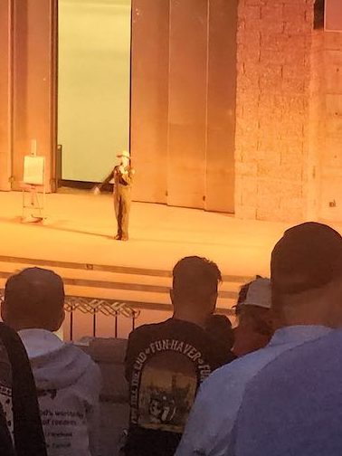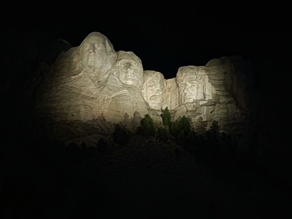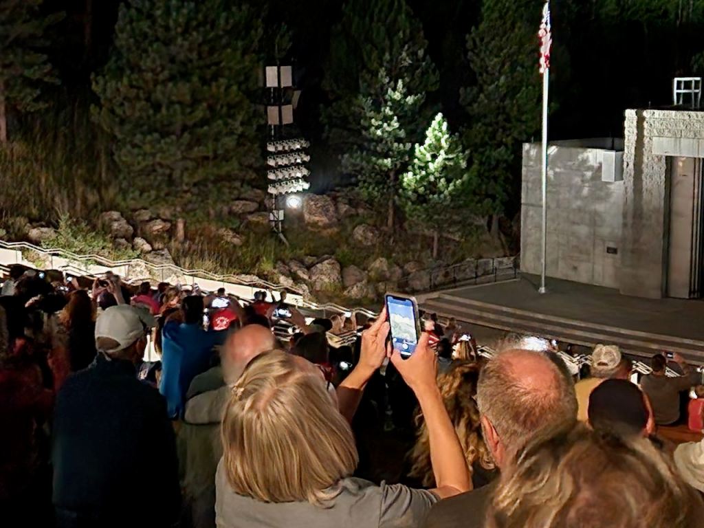 We were early for the 8 pm start of the evening program, so we staked a spot in the amphitheater and played on our phones. The program started with Ranger Dan giving a 10 minute talk about the Declaration of Independence, the 4 presidents and the meaning of Freedom. He was quite impessive. Then there was a 20 minute film called Freedom.