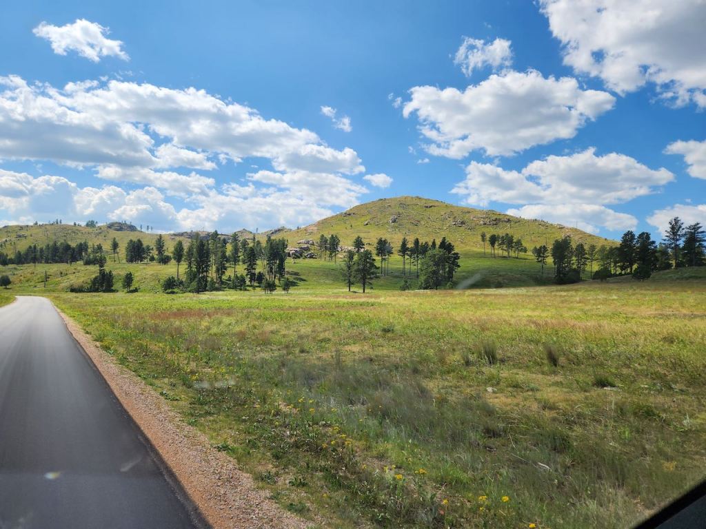 The drive started with some Black Hills driving, and a couple of road side signs – and yes, the CCC was a big part of developing the park in the 1930’s. They are called the Black Hills because with the dark evergreen trees they often look black, especially when the sun isn’t shining brightly.