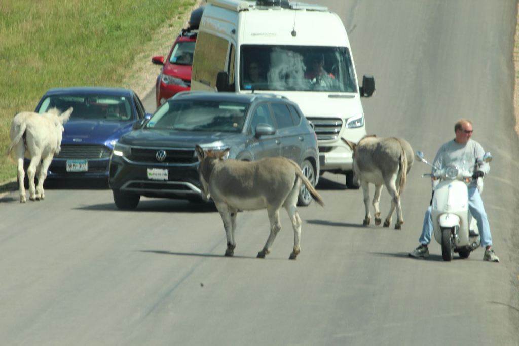 Then we came upon the “begging burros.” They are actually donkeys that are descended from the pack animals that served the tourists in the early 1900’s. We did not feed them but we certainly had to slow down until they got out of our way.