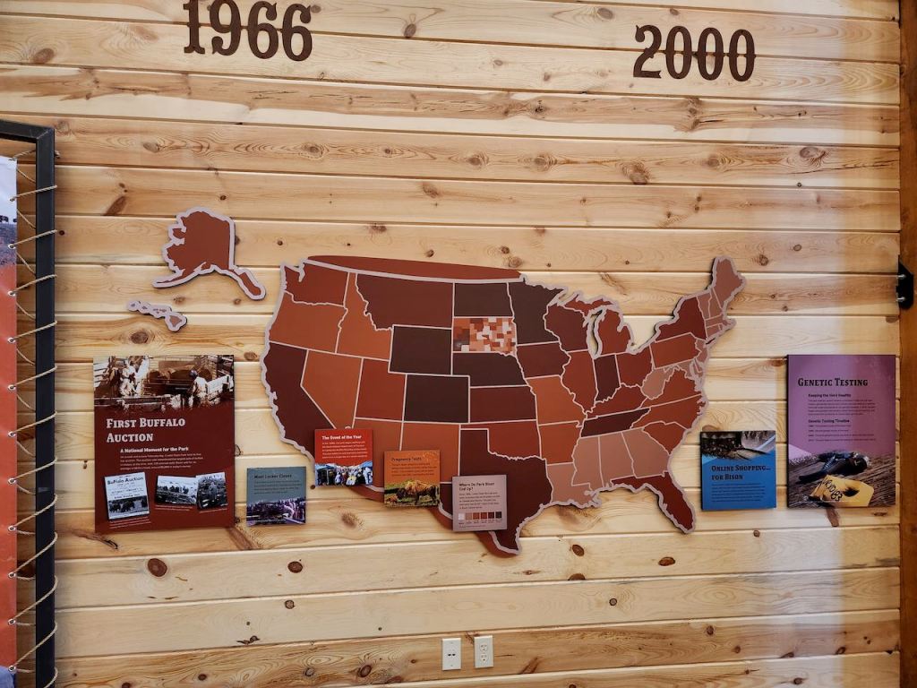 Our next stop was the Buffalo Corrals – don’t ask me why they call them that, since the animals we have in the US are bison. They talked about the history of where bison can be found, and we talked with a docent about the auction they hold every year. They try to keep the herd here in the park to about 1,000 and about 400 calves are born every year, so the auction is a way to keep things in balance – it is not just calves they auction, but all ages, and they sometimes bring some breeding stock in from other locations to keep the gene pool healthy.