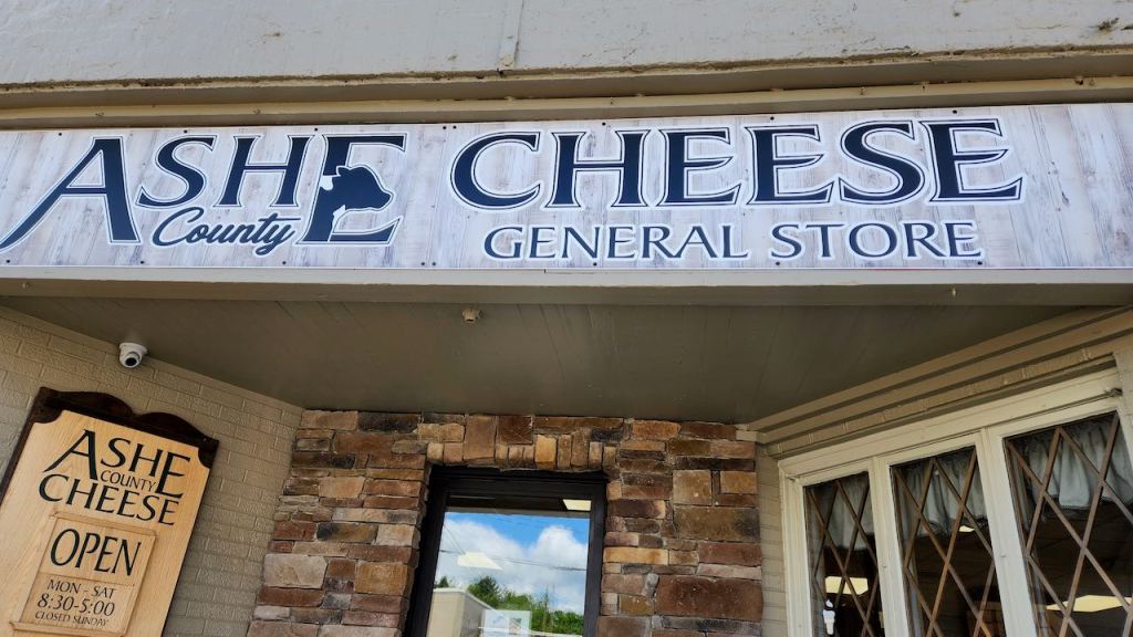 On Friday, we went to the little town of West Jefferson – the Ashe Cheese Company is there but they were not making cheese that day, so there was only a movie to watch. But we did get our pictures taken with the cow sculptures. That’s Donna on left and Terry on the right of us.