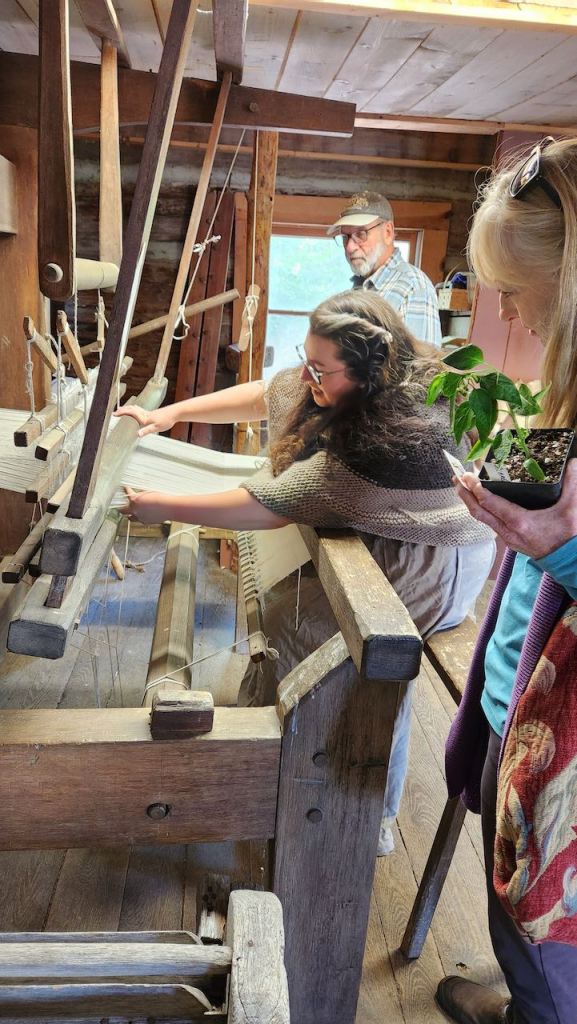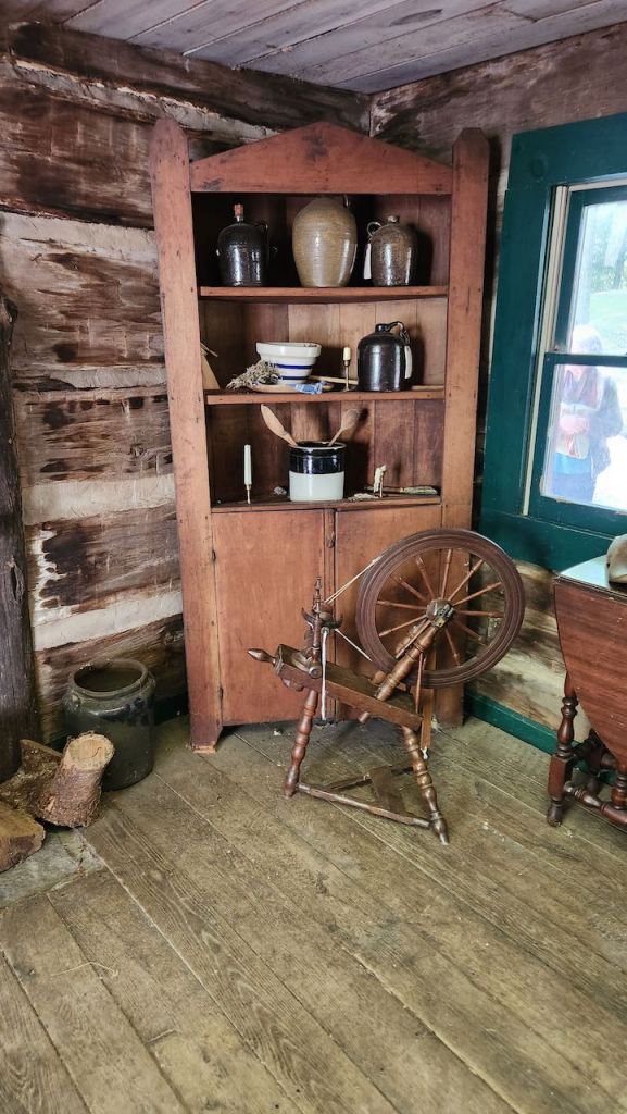We wandered through the Hickory Ridge History Museum which it right up hill from the farmers market. It is a collection of cabins from the southern Appalachian region from 1785 to 1805. They were having a free admission day and there were folks running the loom. This basic one room cabin was originally built for a family with 13 children, 10 of which lived to adulthood.