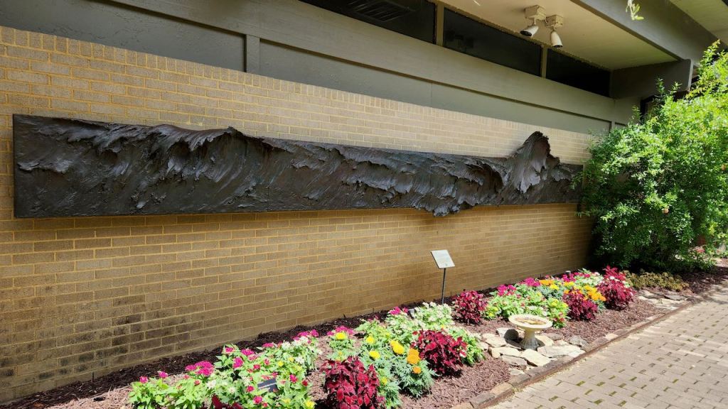 The sculpture with the jaguars playing was right outside the window of the restaurant we ate in. It was a very good lunch. And this bronze is Marine Relief by Stanley Bleifeld – it was originally just 12 feet long, but he added 12 feet when they decided to display it on the outside of this building. It reminded us of The Wave by Hokusai.