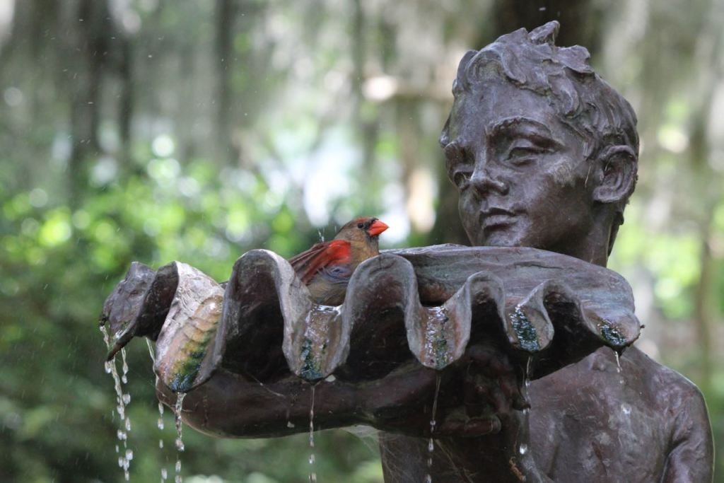 I think Shell Boy by Avard Fairbanks was designed as a fountain, but this female cardinal seems to think it was a bird bath.