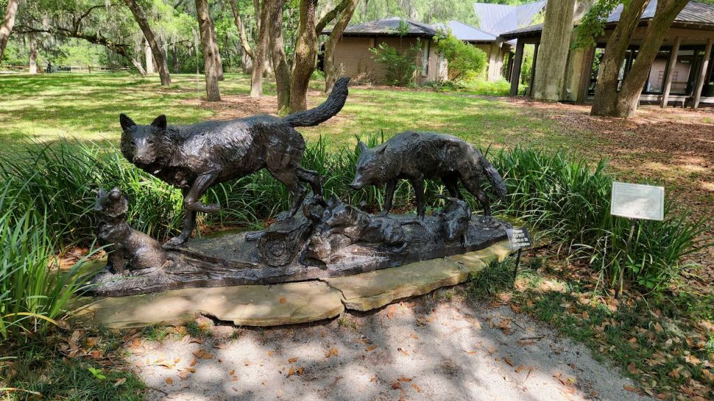 There is also a small zoo on the property, with both domestic and native animals (most of which have been injured and cannot be out in the wild. And even in the zoo there are sculptures. Here are some Spanish goats – mama and kids, Chloe and Lucinda by Andre Harvey, a horse and a sculpture of a Timber Wolf Family by William Turner.