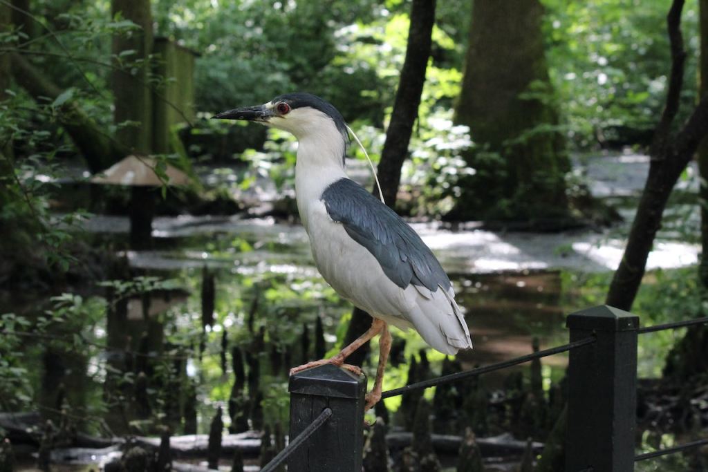 There was a huge aviary – there were several black-crowned herons – that’s Catherine finding her way out of the double doors to keep the birds in.