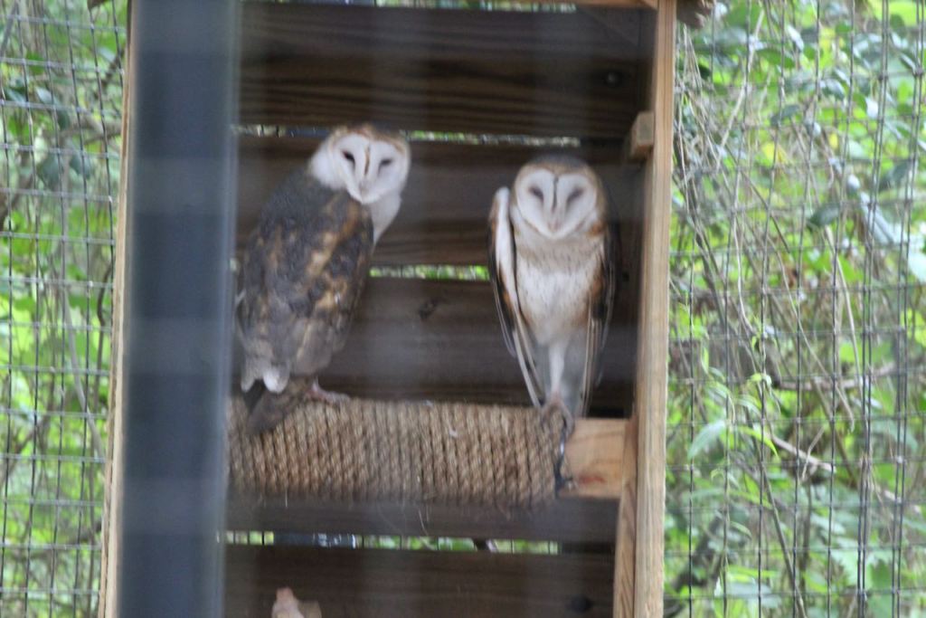Barred owl, barn owls and a sand hill crane. Trish and I were wondering the other day, what barn owls were called before there were barns – so I looked it up and found out that some other names for a barn owl have included monkey-faced owl, ghost owl, church owl, death owl, hissing owl, hobgoblin or hobby owl, golden owl, silver owl, white owl, night owl, rat owl, straw owl, and delicate owl. Now you know too!