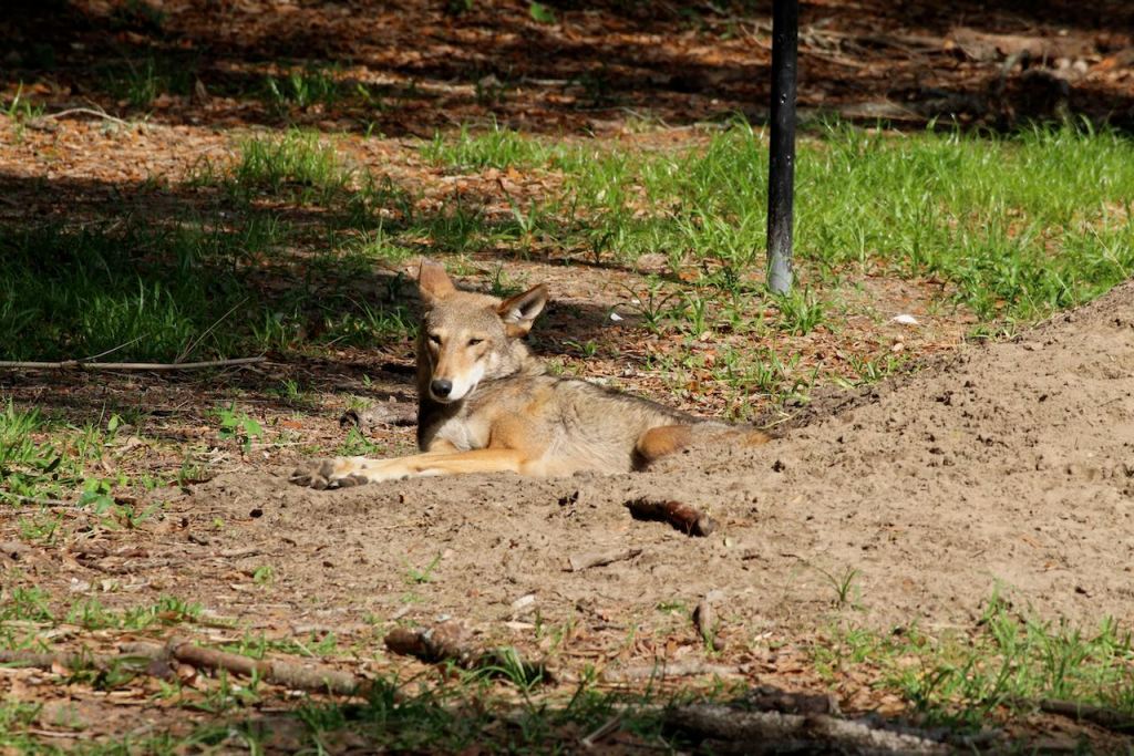 This is a Red Wolf. Brookgreen Gardens is a participant in a program to help save them from extinction. In late 2023 there were less than 25 known to be in the wild and 300 in captivity in 50 program sites across the US.