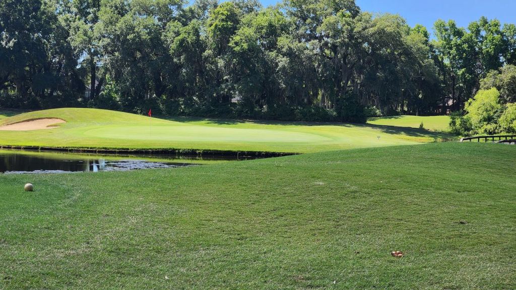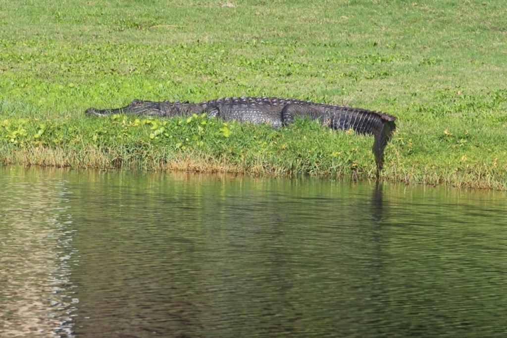 And we got to see some wildlife – there were many fox squirrels and that’s one of several alligators that were near the course – thankfully none were actually in the fairway. That fox squirrel on the lower right is eating one of Trish’s cookies. It was pretty aggressive and seemed like it might actually get in the cart to go after the food, so rather than let that happen, Trish shared.