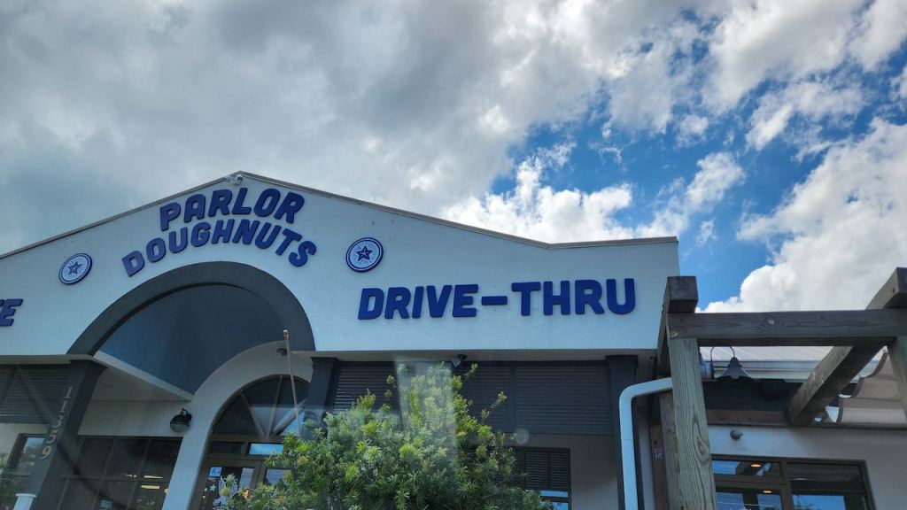 After golf we went looking for breakfast for lunch so Trish could get some grits. We were not successful as the place that was recommended only served brunch on the weekends – but our sandwiches were good and then on the way back to the RV we found the Parlor Doughnuts and picked some up for Friday’s breakfast. Back at the park we got some ice cream and then went to the Nature Center. During the walk on Wednesday we had heard about a rookery, but we were not sure where it was and figured the folks at the nature center would know.