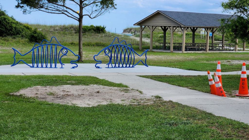 We left Boone on Monday, May 13 and made our way to Huntington Beach Park in SC. That’s just south of Myrtle Beach. Our friend Catherine was joining us for the next four days. After setting up our campsite we decided to go out to dinner. We settled on the Dead Dog Saloon. There were photos of dogs everywhere, and all of the tables had dog “dad” jokes on them. The hush puppies were very good, but the she-crab soup was not the best.