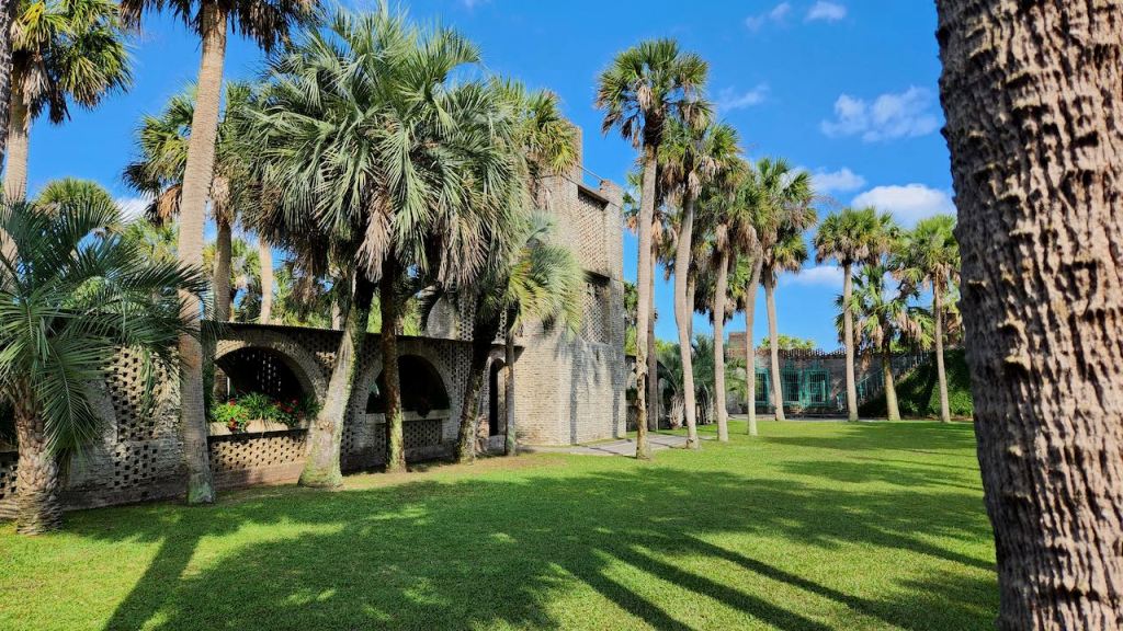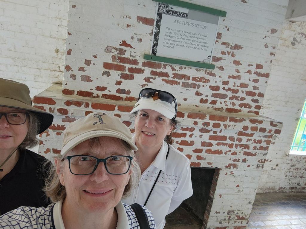 Our next stop was Brookgreen Gardens and Sculpture Park. Archer and Anna Hutchinson moved to the area in the 1930’s as Anna had TB and they were looking for a milder climate. They bought up four old rice plantations, built a home (pictures of that later) and started the sculpture garden to display Anna’s works. The sculpture garden continued to grow with works from American artists – it’s a beautiful place to walk around. The umbrellas were along the entry way and that’s Catherine smelling the gardenias.