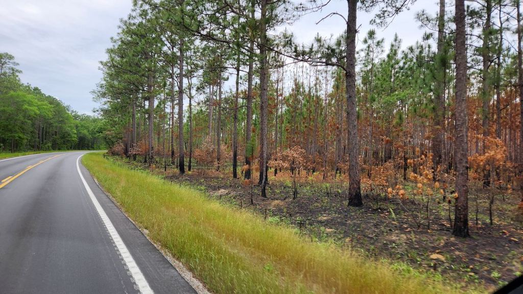 It was a short ride from Myrtle Beach to our campsite in Charleston on Friday, May 17. We were on US 17 for most of the way and on some nice two lane roads that make for easy driving. Looks like there had been some sort of fire in the left picture.