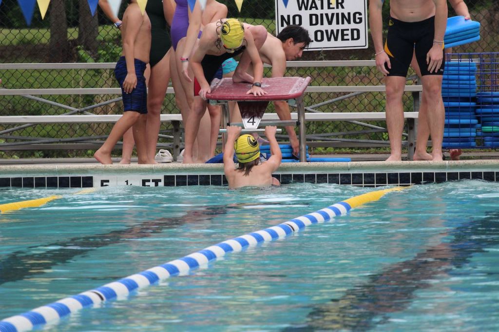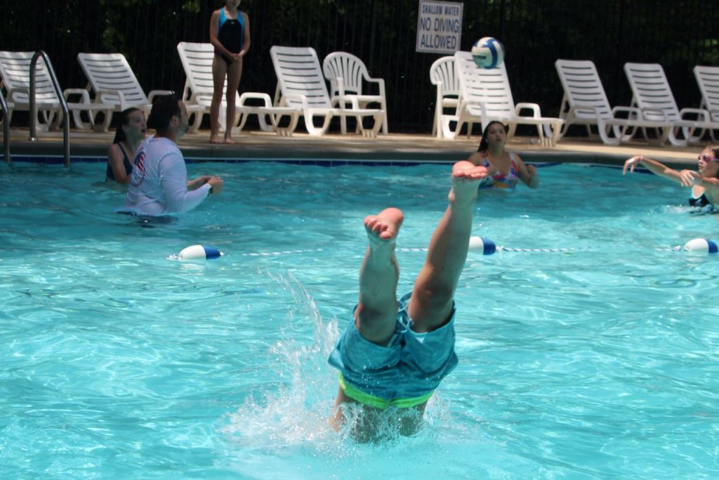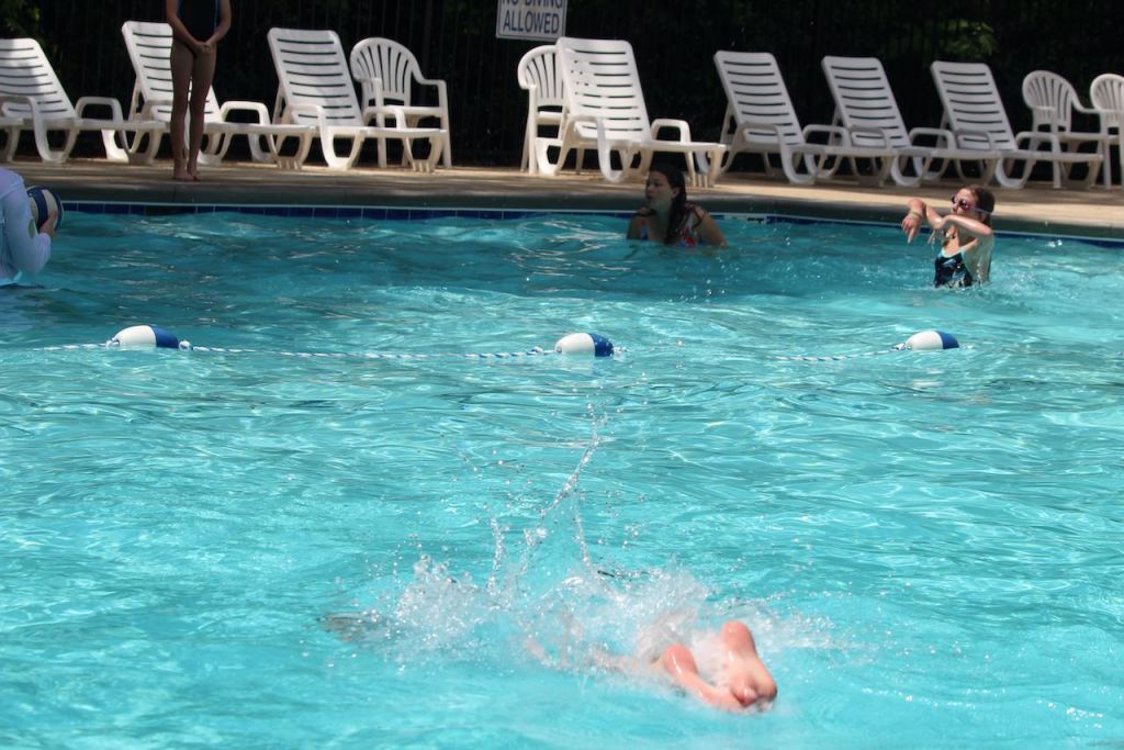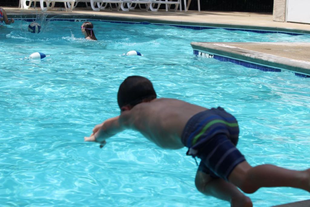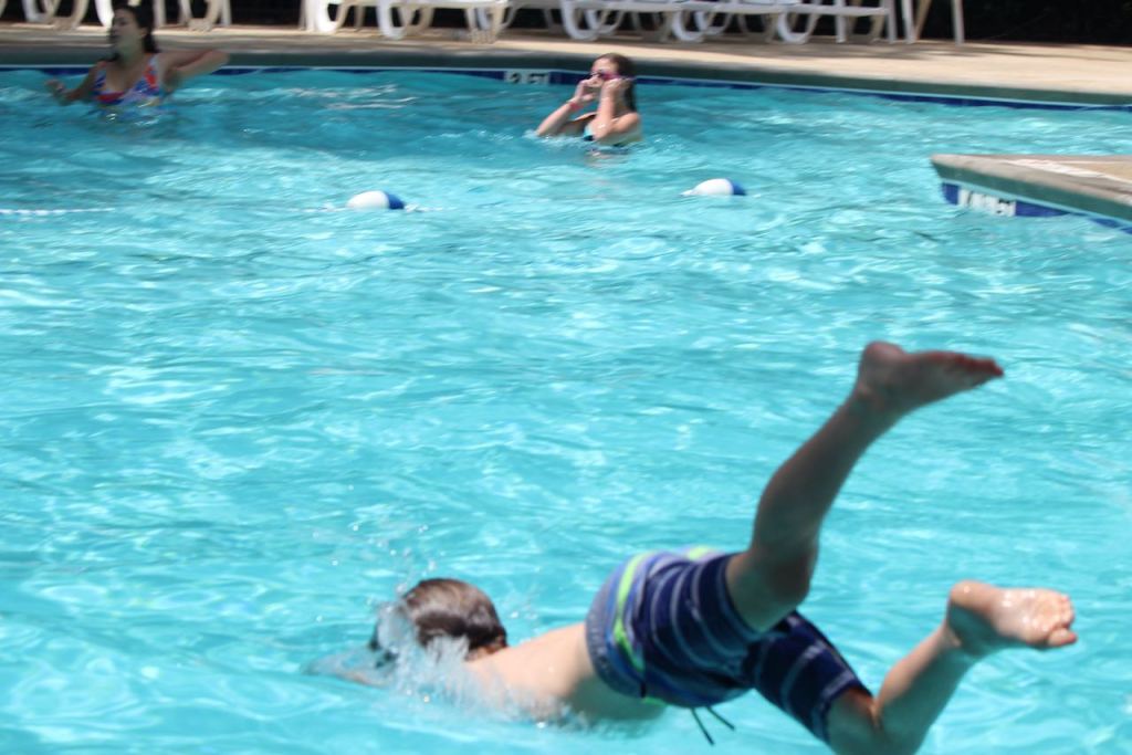 After relaxing back at the house, the boys went swimming in the neighborhood pool – which is right at the end of the cul-de-sac where they are the last house. It’s very easy for them to walk over. Ben is on the top row and Blake on the bottom – more diving practice.