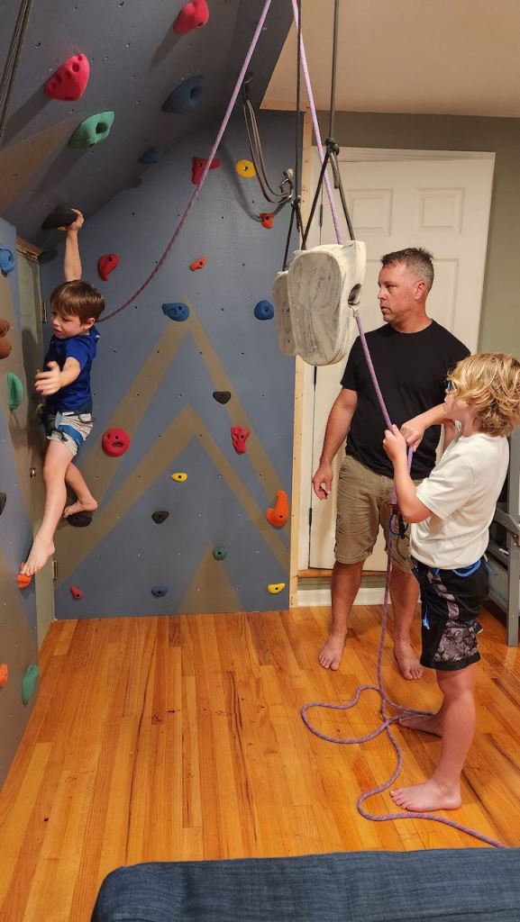 Great pictures here!!!!! Blake and Ben are developing some very nice climbing form – nice strait arms in that overhang, Blake 🙂