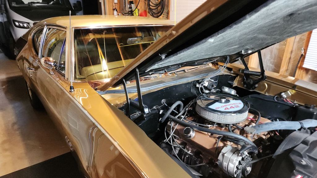 After lunch back at the house, Gay’s cousins took off – they were borrowing her brother’s spare car – which was held together with Bondo and duct tape. He did a great job matching the colors, but it is quite different than Earlin’s 442.