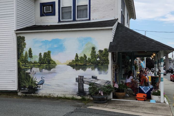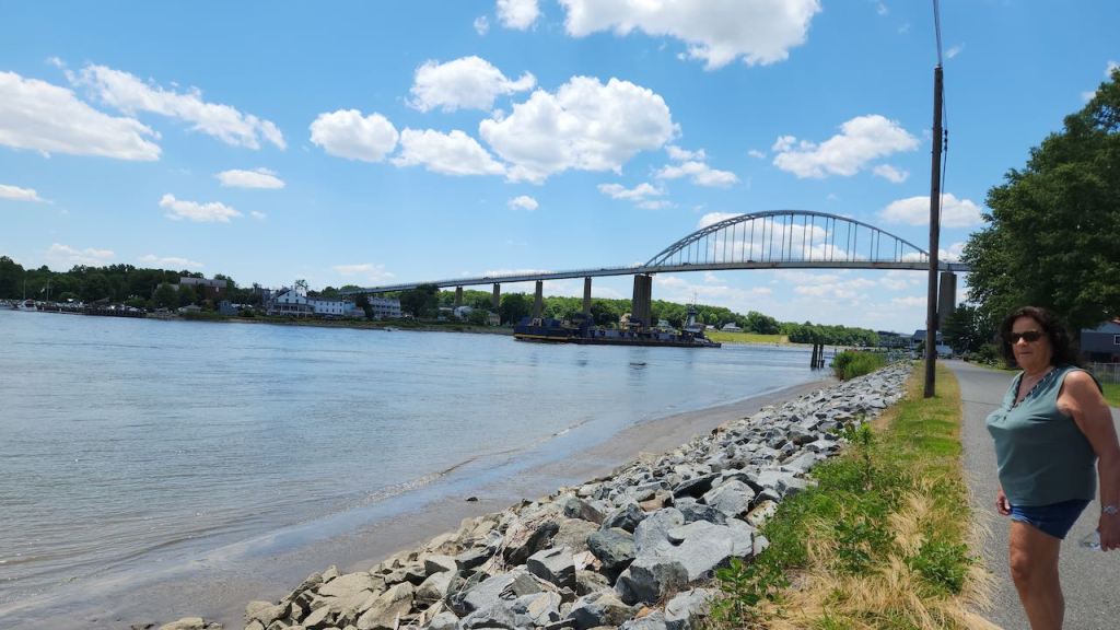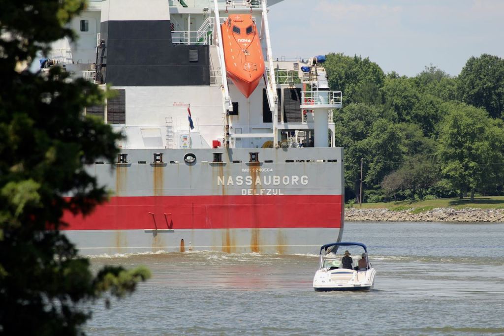 There was one problem with our planned walk – the access area and the trail were closed for renovation. So after driving around the park and checking out the beach and the campground, we decided to go to Chesapeake City – this is where the Chesapeake and Delaware Canal starts. It links the top of Chesapeake Bay to the Delaware River – thus drastically reducing the shipping time between Baltimore and Philadelphia. Our first stop was the canal museum. The only big ship we saw going by was this one tanker – looks like it would be a wild ride if you had to go out in that life boat!