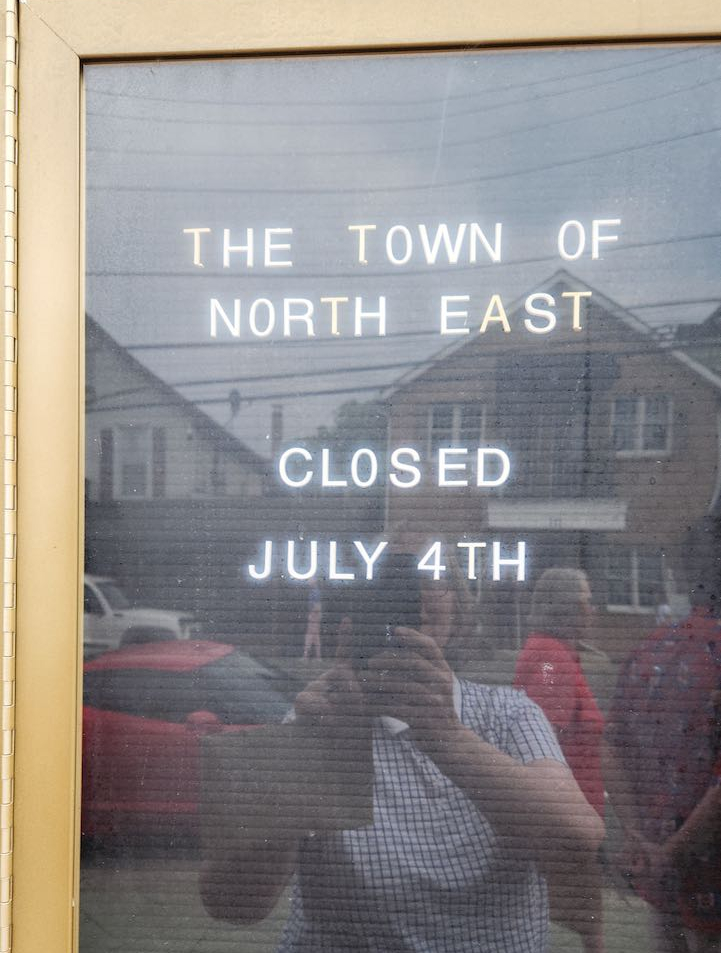 We then went for a walk in the little town of North East. The whole town wasn’t closed for July 4th, it was just the town hall. They have a 2nd Friday celebration, so many of the shops were open late, there were street musicians playing, and some interesting characters that Earlin had his picture taken with and even a pony available for petting. After our walk we went for appetizers at Steak and Main (we had won a $10 gift card at one booth on the road) and then we went to Woody’s Crab House – and guess what, we had crab cakes.