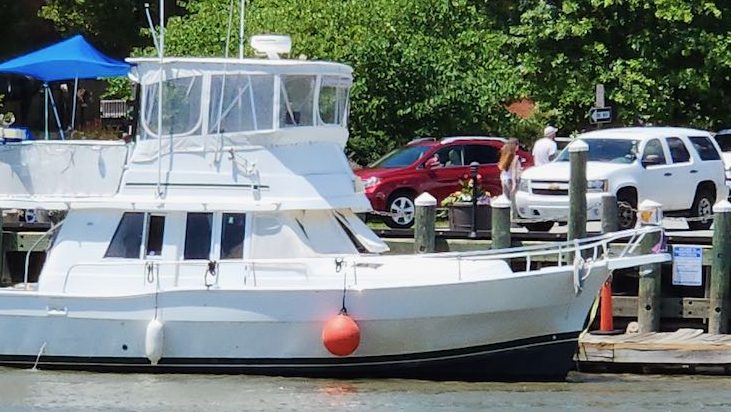 One of the things we noticed in the harbor in Chesapeake City was this boat – you probably can’t tell but there is a pennant on the bow that designates it is cruising the Great Loop. A few years ago we met Bruce and Susan near Chicago and again near St Louis when they were on their year long adventure doing the Loop, so we recognized the pennant.