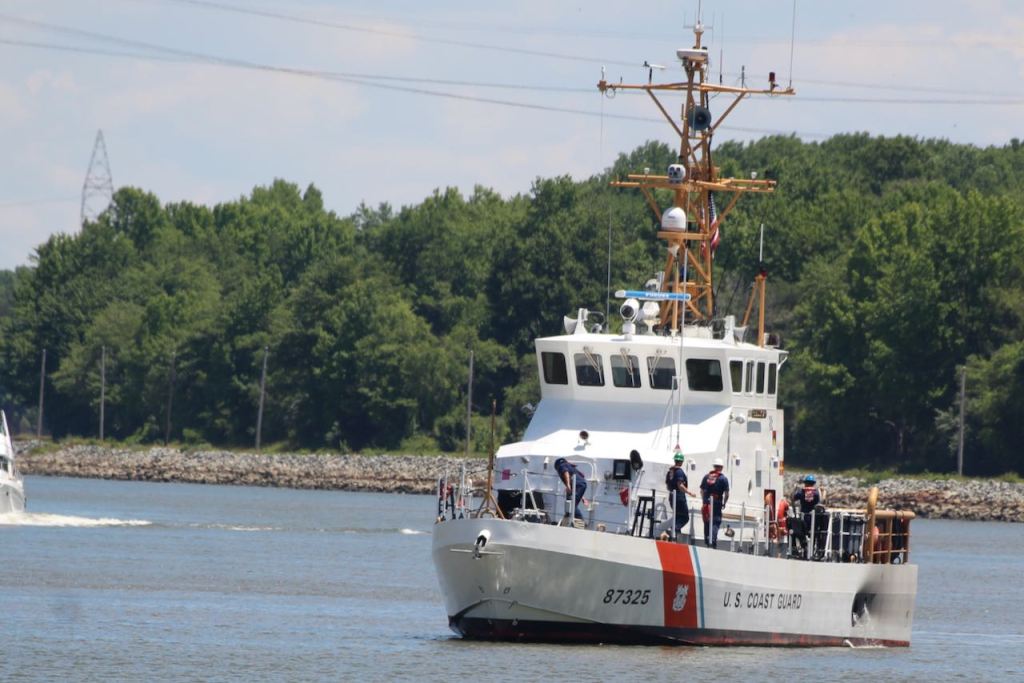 We also saw this Coast Guard cutter on the canal – we couldn’t figure out what they were doing or why they needed hardhats to do it.