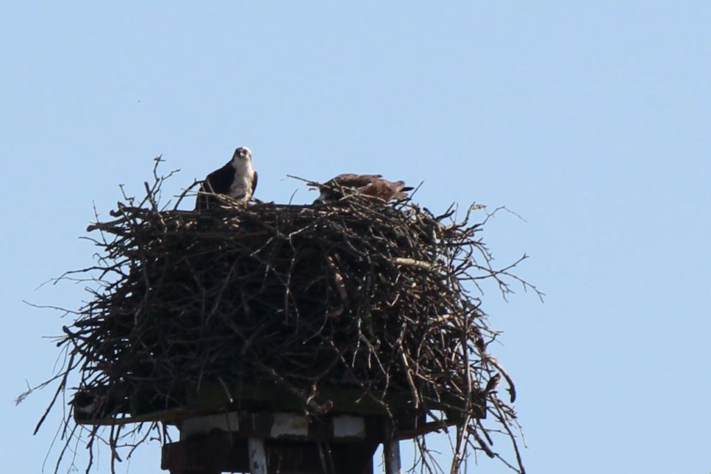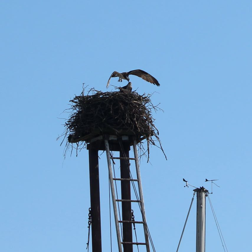 This osprey nest was near the boat slip and they weren’t only in the nest but flying and landing in nearby trees.