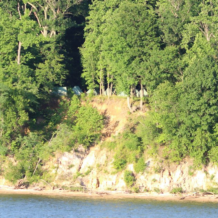 We were motoring by this structure, trying to decide what it was. With the help of Google maps, we thought it might be part of the Rodney Boy Scout Reservation, and decided the structure was probably part of a ropes course. Then we saw the tents up on the bluff and at least knew we were right about the boy scouts.
