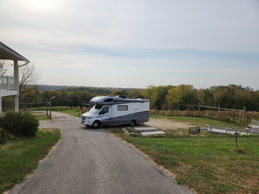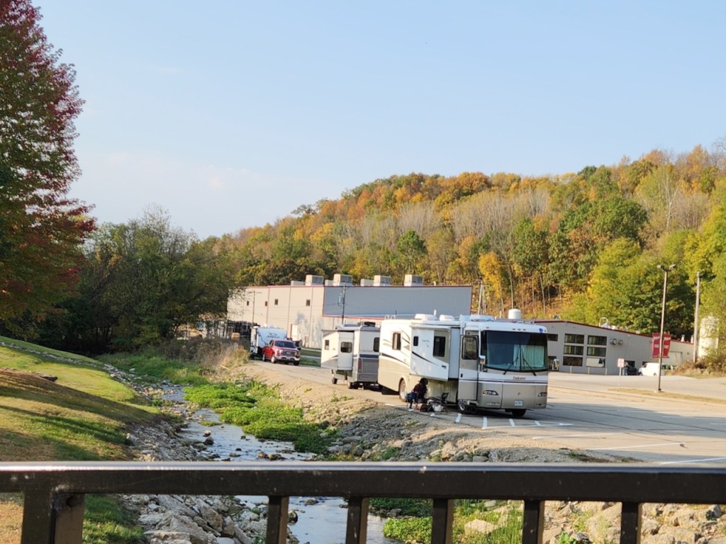The three RV’s in the lot. That’s ours tucked in behind the class A – the one that looks like a bus