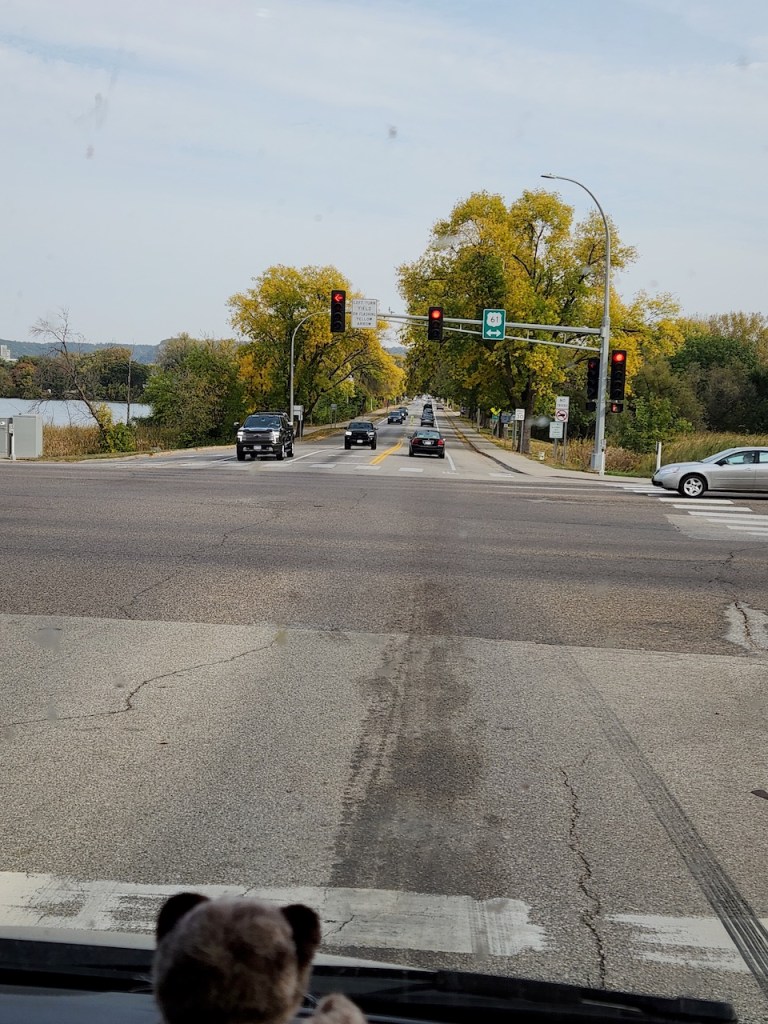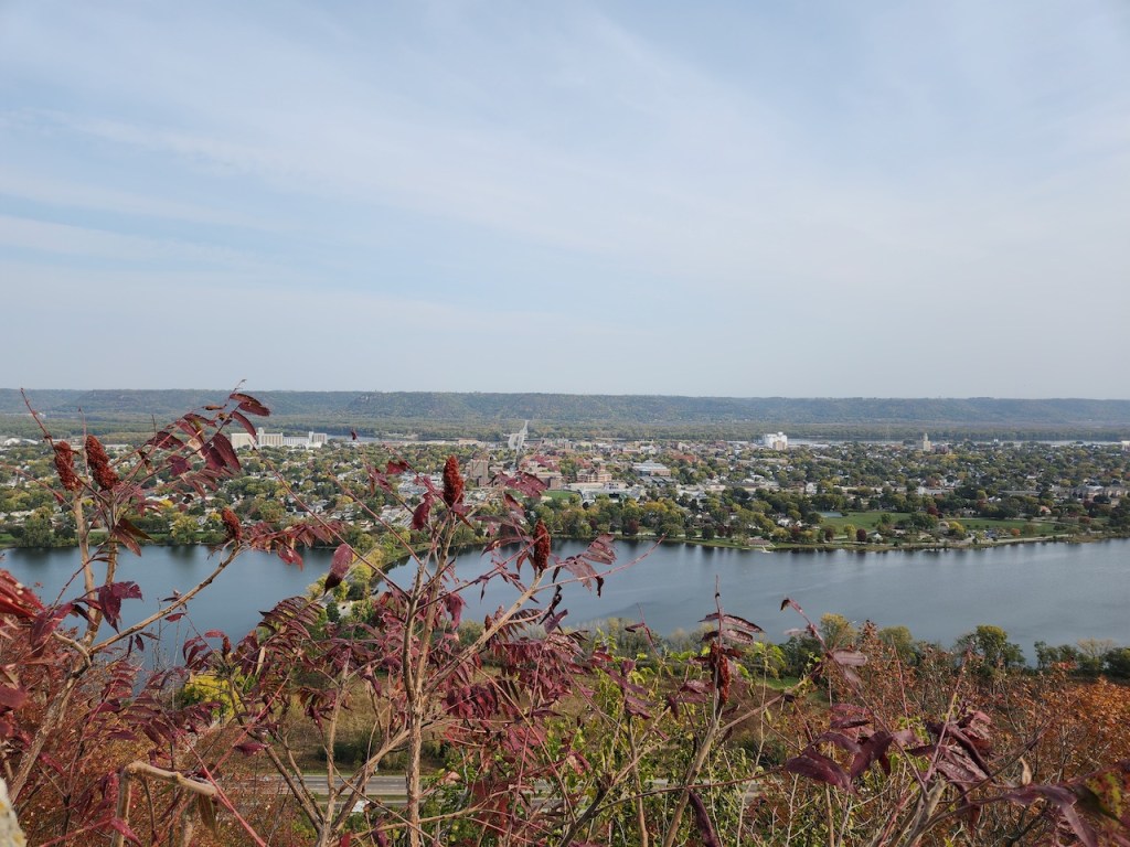 The owner of the winery had said to stop at the Garvin Heights overlook – which we did. It was a great overlook – Lake Winona is the big body of water you are looking at – the Mississippi can be seen in the lower left photo almost on the horizon. There was some beautiful color overlooking the city of Winona – which was a lumber town and is now a college town.