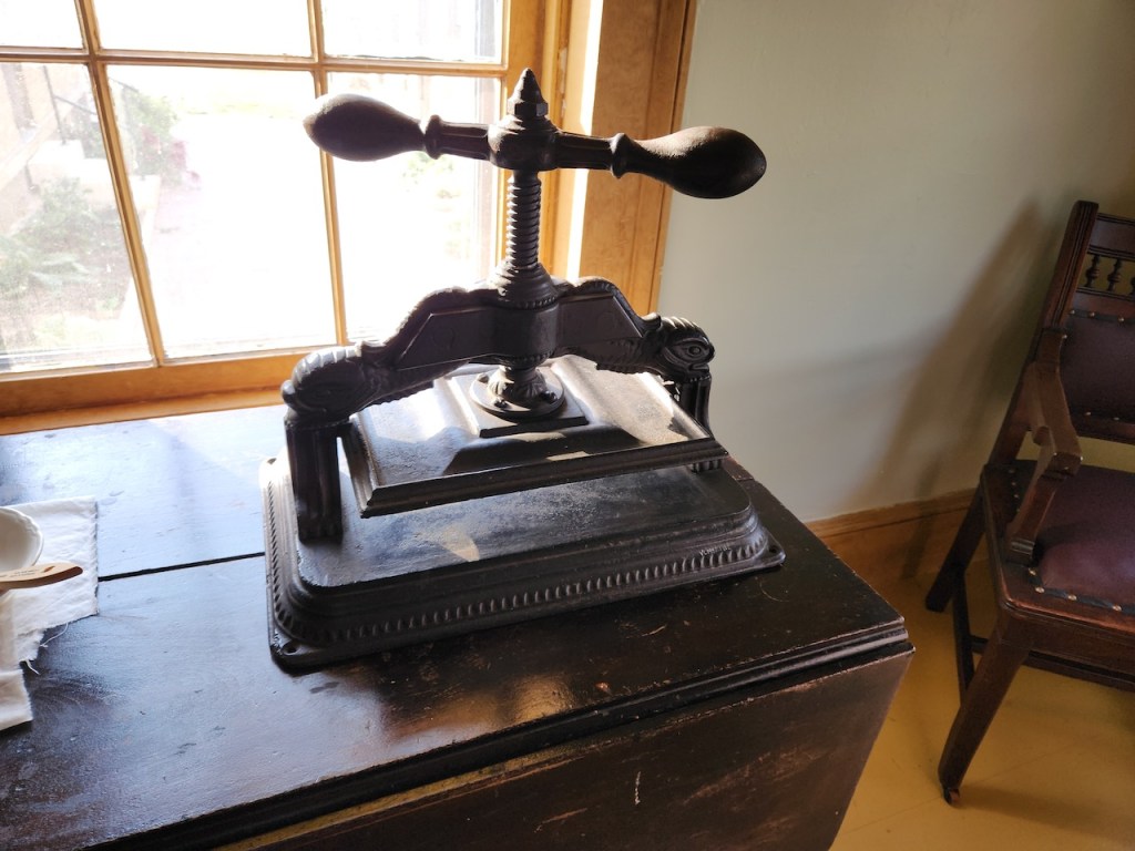 This is the office and that’s an early copy machine. After a document was written out in ink, it would be pressed against a thin damp piece of paper – enough of the document would transfer, and then you could read the copy by holding it up to the light.