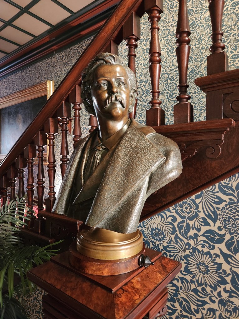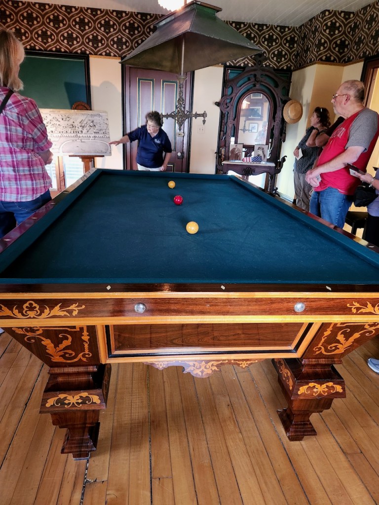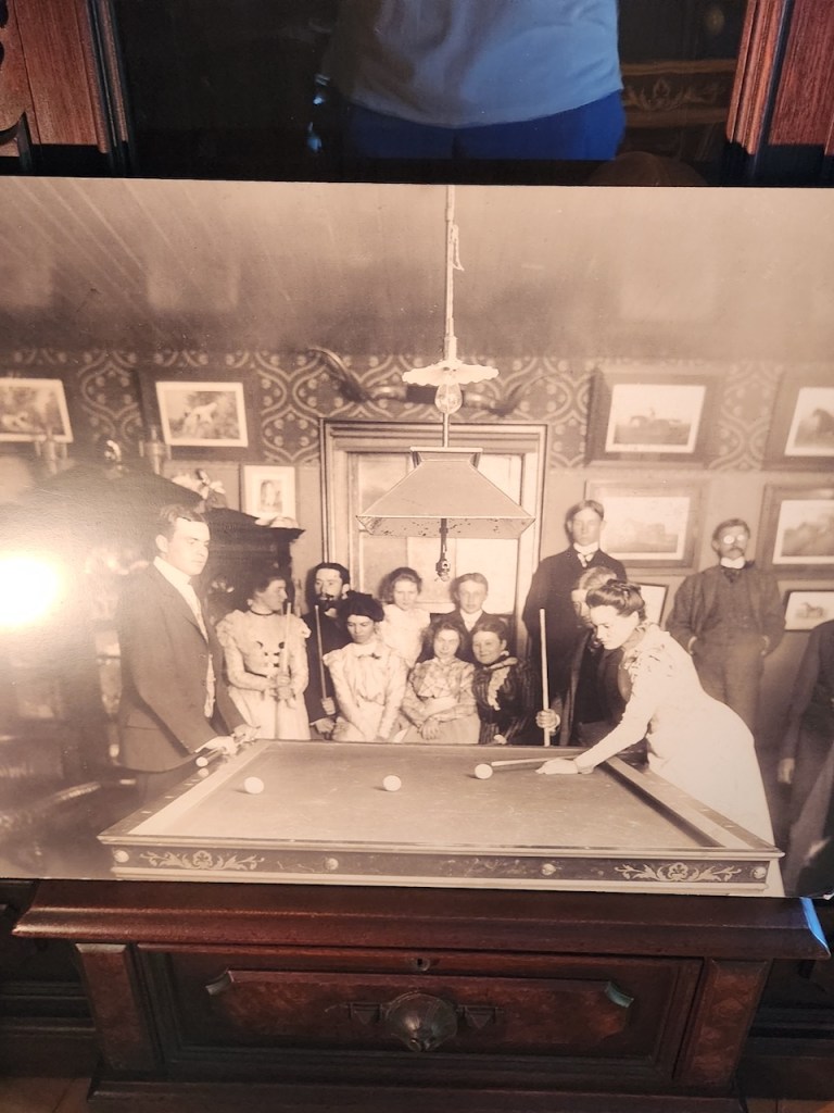 The house has been restored to it’s appearance in the period from 1893 to 1898 from photos that the family had from that period. That’s the photo of the family playing billiards and our tour standing around the table – check out the same light fixture.