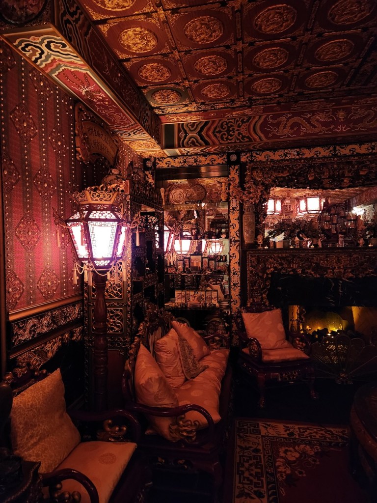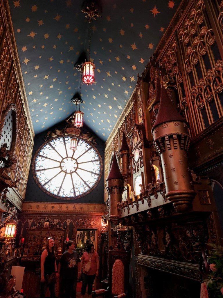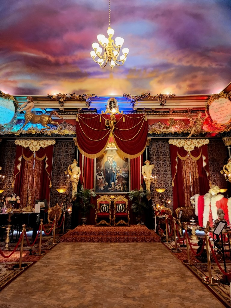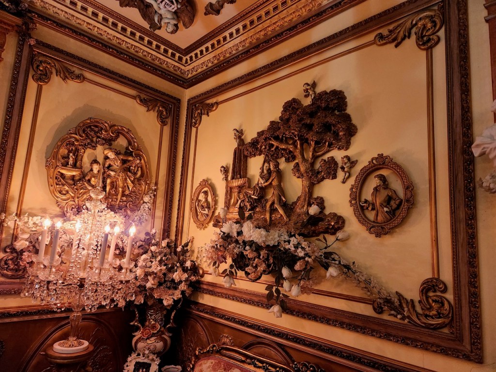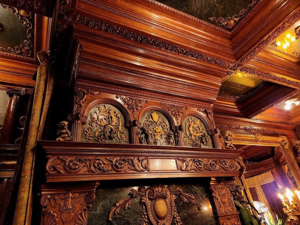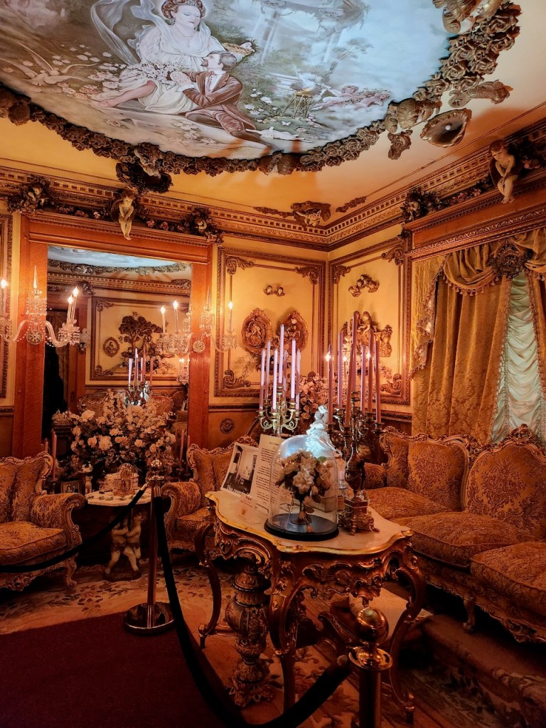 Part of the decorations in the Chinese room, and the hall with the castle decorations is 70 feet long.