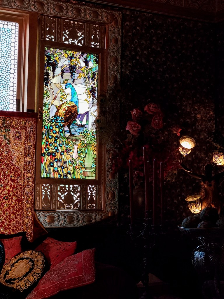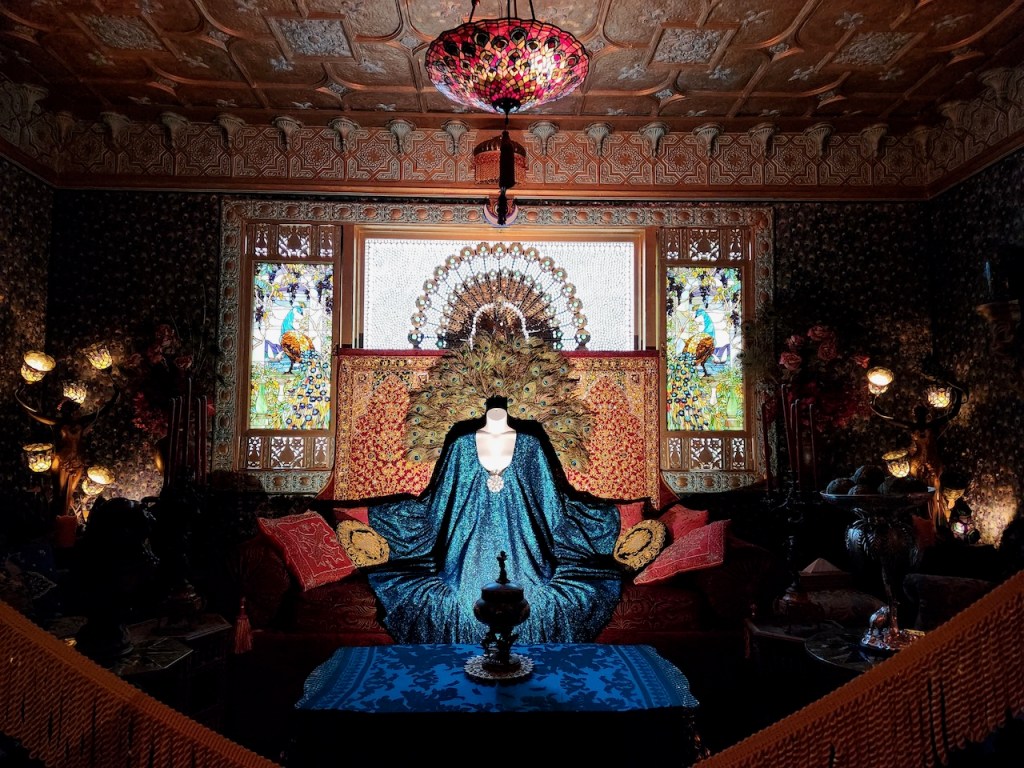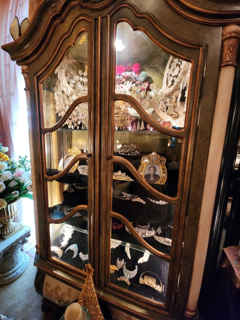 The Indian themed room and one of the cabinets that house Adrienne’s tiara collection.