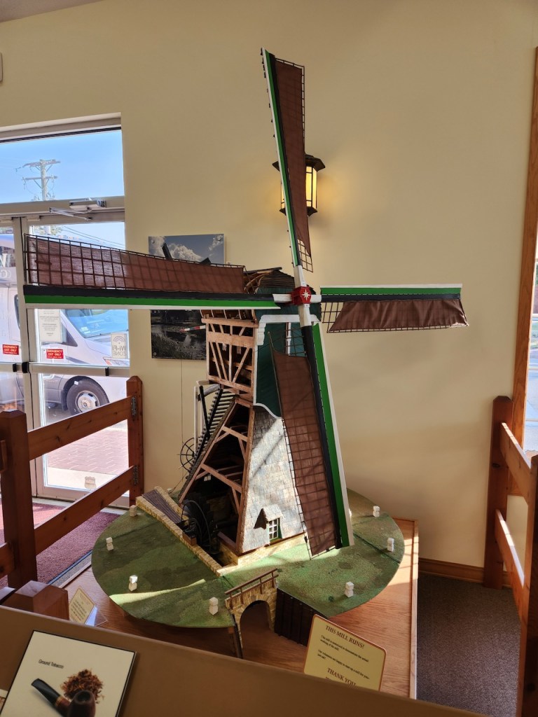 Our next stop was the little town of Fulton, IL.. I had read about the De Immigrant Windmill and wanted to see it. It is a “modern” mill, having been built in 2000, but it was actually built first in the Netherlands, then deconstructed – with the pieces being numbered – and then reconstructed on the levee in Fulton. What I didn’t know is there is also a Windmill Museum, that is full of models of windmills from all around the world. They were constructed by Henk and June Hielema as a hobby. When they were getting older they knew they needed to find a place for these models – that range in size from a foot tall to about 5 feet tall. When Henk visited the De Immigrant he was greeted warmly and given a great tour – he decided this was the place for his models. The town raised $500k and built a museum right across the street from the mill to house the donated models. Here are some examples of the models.