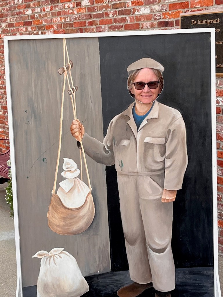A picture of Henk and June and the De Immigrant from the front of the museum.