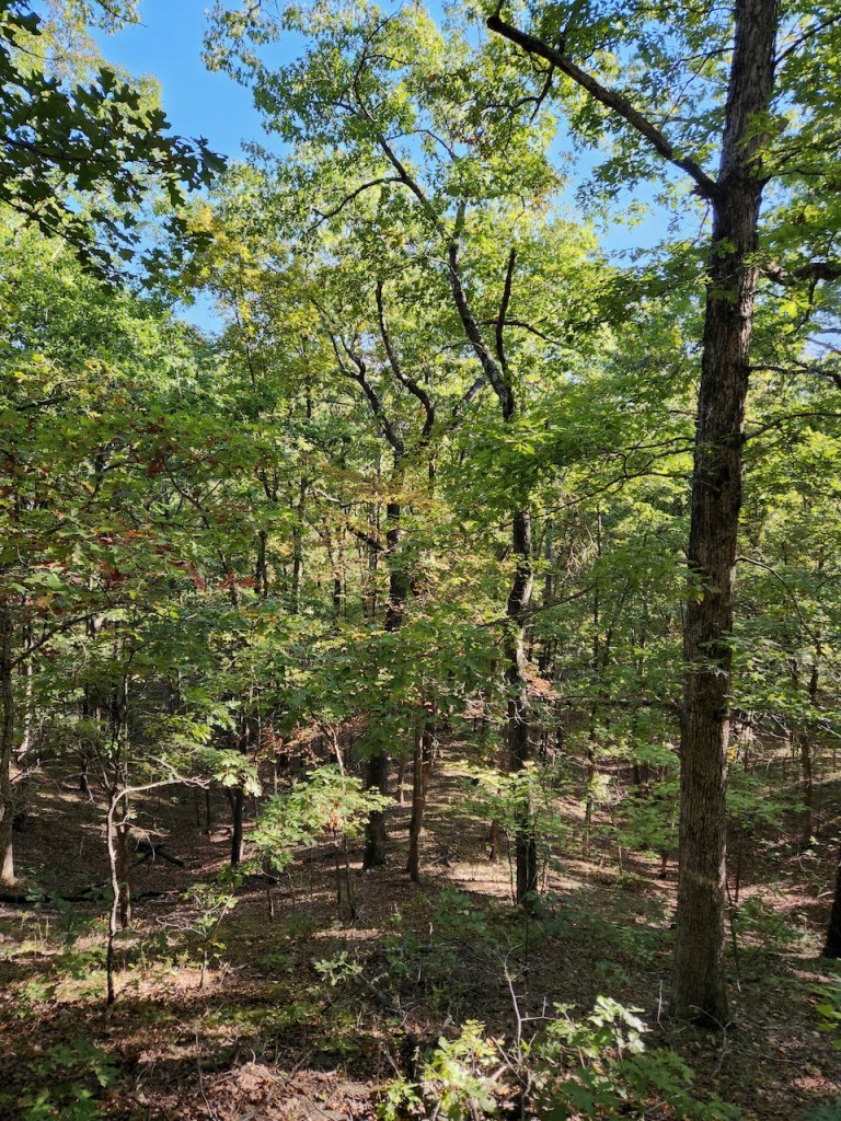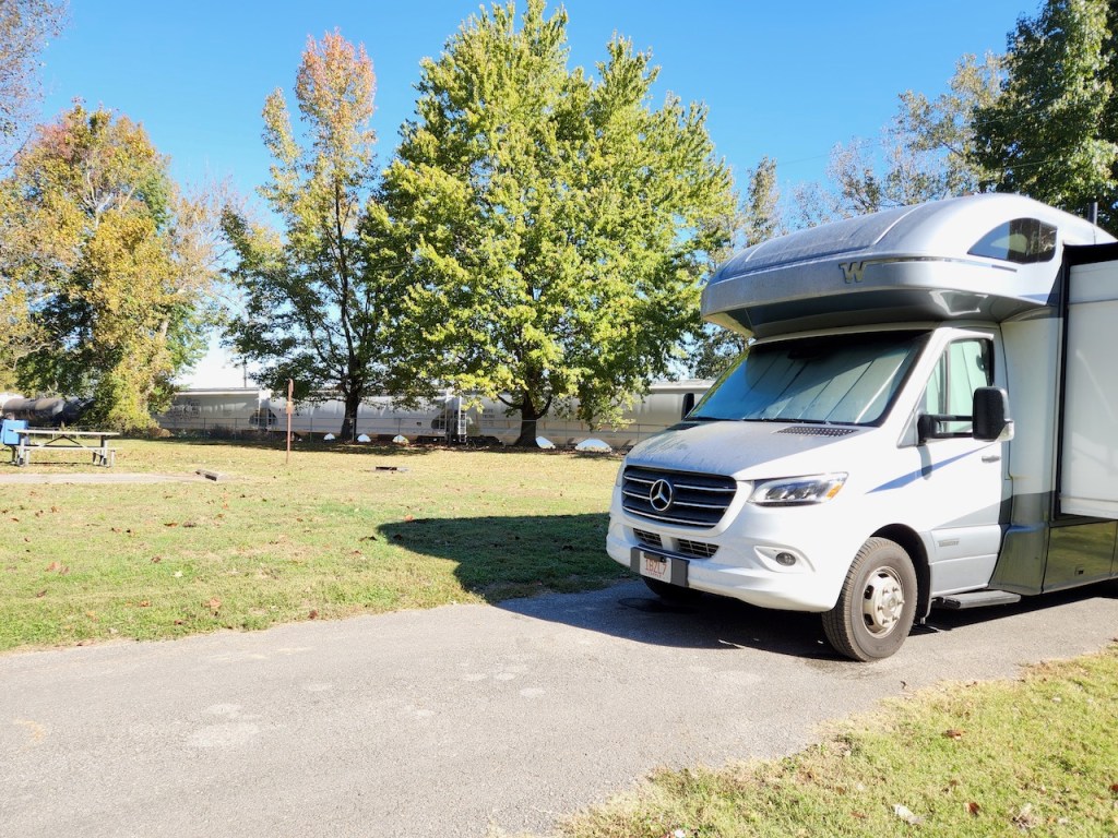 We had arrived at the Trail of Tears State Park in Jackson, MO on Thursday, October 18 late in the afternoon. I had read that the train tracks were close to the campsites, but didn’t realize how close. I took these pictures the next morning when a train went by. And they have to sound their horn because there is a road that goes across the tracks right at the entrance of the campground. And yes, trains can run at any time of the day or night. I only heard three that went by while we were sleeping – not sure if that is all there were, or if I slept through others.