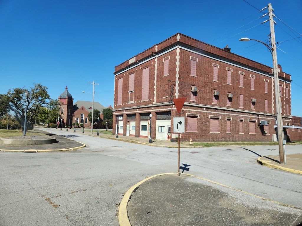 The restaurant was in the town of Cape Girardeau, a Mississippi River town founded by French fur traders in the early 1700’s. We took a walk around town, spotting the town hall and some other older buildings.