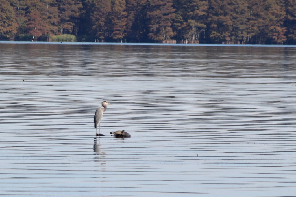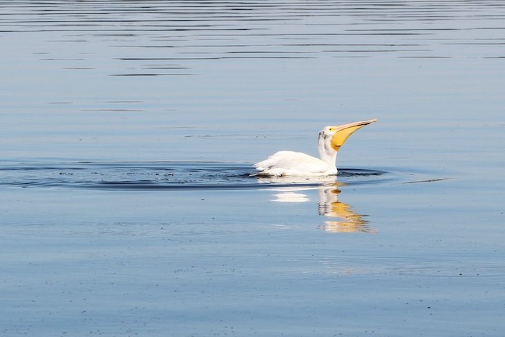 The next morning we stopped at Reelfoot State Park, took a walk out a pier where we spotted a heron and a few pelicans, including this one having some lunch.