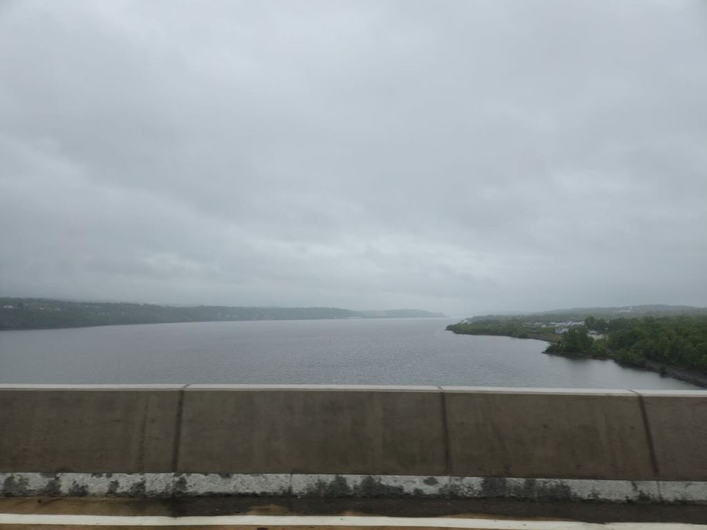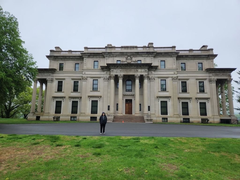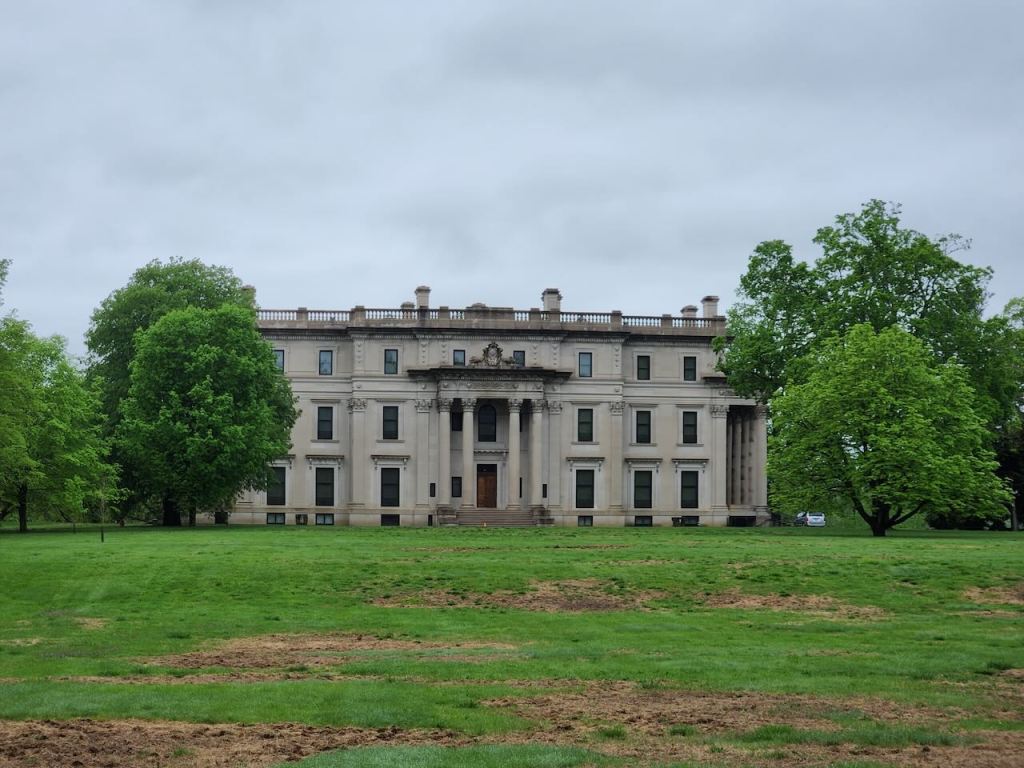 Monday morning we had tea and coffee with Doug, before unhooking and getting on our way. (We had said goodbye to LB and Olivia the night before, as we knew they would be off to their respective schools before we were ready to be moving for the day.) Then we were off to Hyde Park to visit the Vanderbilt Mansion – it is on the Hudson River and is the only Gilded Age mansion maintained by the National Park Service. (FDR, who lived down the street, was instrumental in saving the mansion when Frederick died in 1938.) It was built by Frederick Vanderbilt, who was a grandson of Cornelius. That’s a shot of the front and then one of the side entrances – which is as magnificent as many from entrances, and some views of the Hudson River.