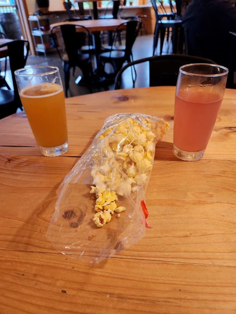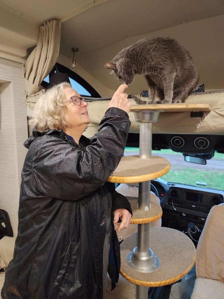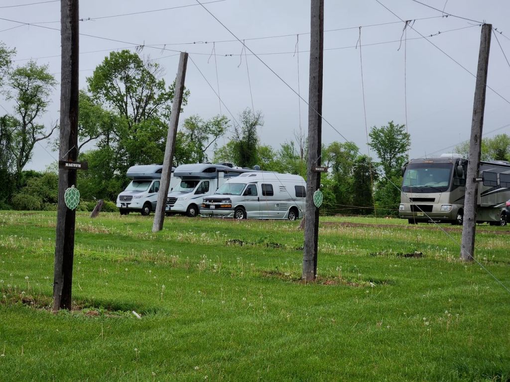 Monday night we stayed at the Readington Brewery and Hop Farm. There were quite a few more poles of hops than my brother Bruce had at his house. There were 5 other RV’s staying there that evening and when we were pulling in, we were right next to a Winnebago View painted exactly like ours. After getting settled in we went over to the brew house – Trish had a beer and I had a hard seltzer. Both were brewed on-site and were very tasty. We stuck up a conversation with the owners of the View – Bruce and Janet were on the way home to Minnesota after a trip to Key Largo. It turned out they travel with a kitty.- needless to say, we stopped by for a visit. Bruce had built Lulu a cat tree – removable for travel. Trish was able to get a cat fix as Lulu demonstrated her love of the cat tree.