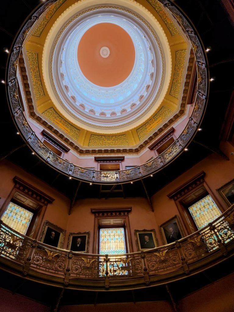This is the state seal rug that is outside the governor’s office. And below that are some shots of the inside of the dome – which was added in 1889 after the original was destroyed by fire.
