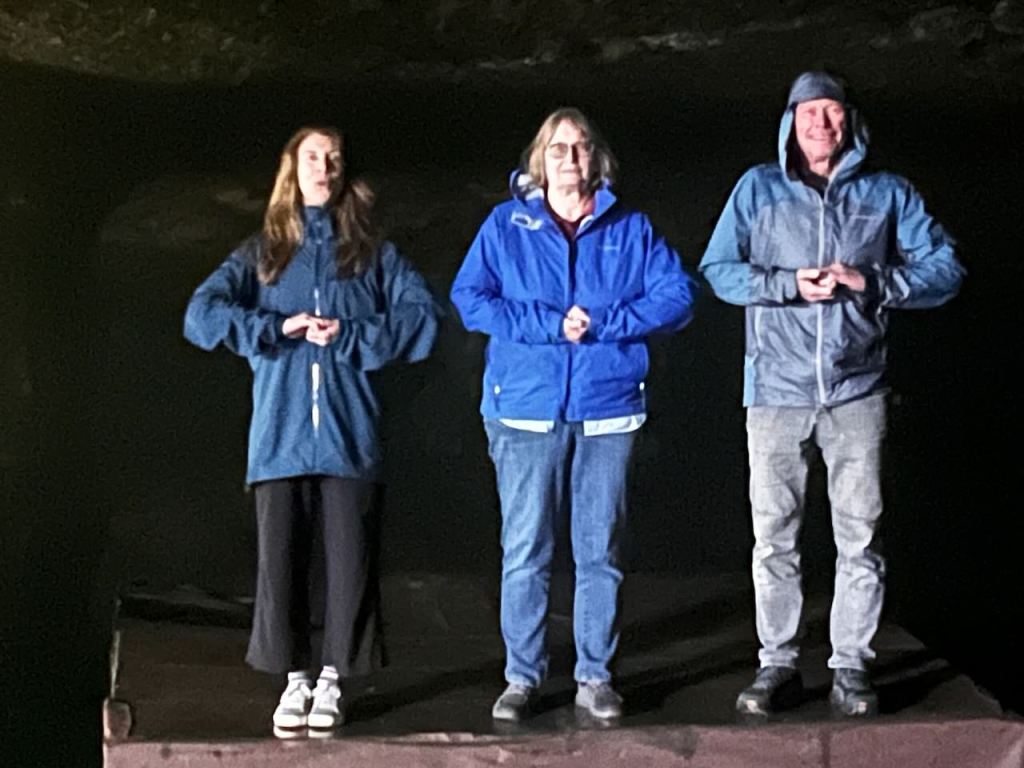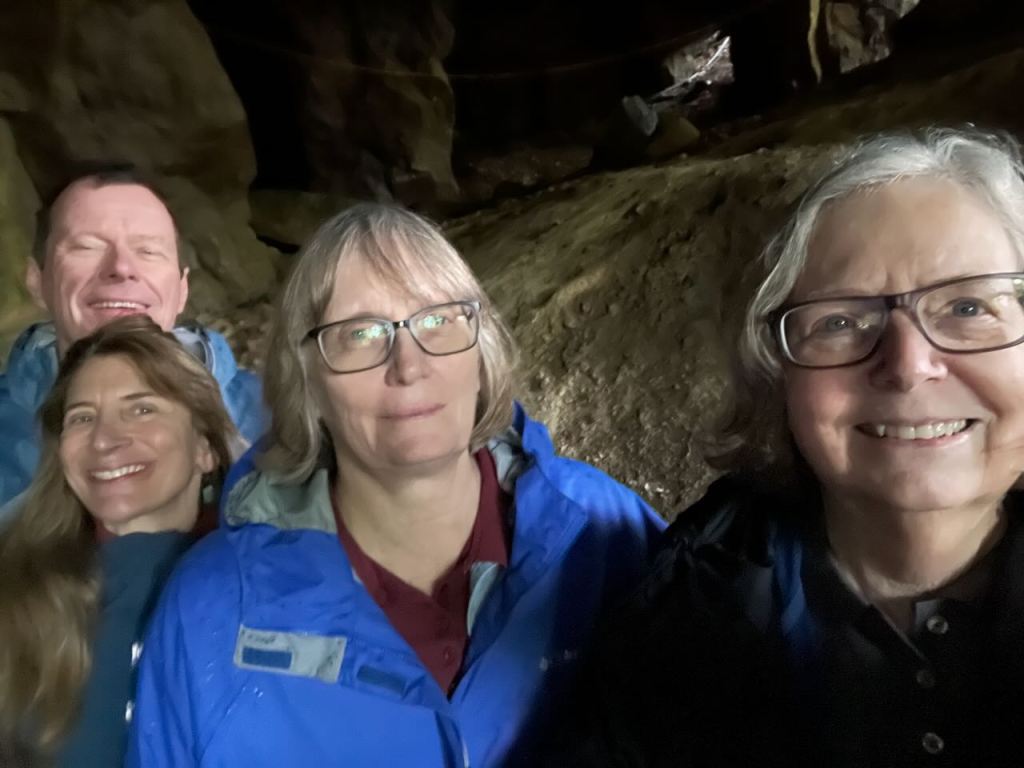 After lunch at Darlings, a cute kinda southern themed restaurant in Tillson, we went to the Widow Jane Mine. This is in Rosendale, which was the center of natural cement production in the US from 1818 to 1970. The Widow Jane “mine” is an one of the underground quarries from which the cement was extracted. It was dark in there, but our eyes did adjust a bit. The quarry is now a music venue – so the three of us played the Von Trapp’s singing in the Sound of Music.