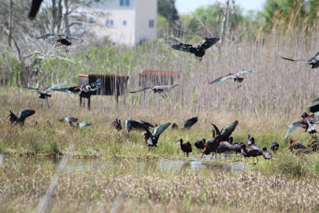 And before we left the campground on Thursday, we walked out a trail to the marsh, where we saw this flock of glossy ibis.