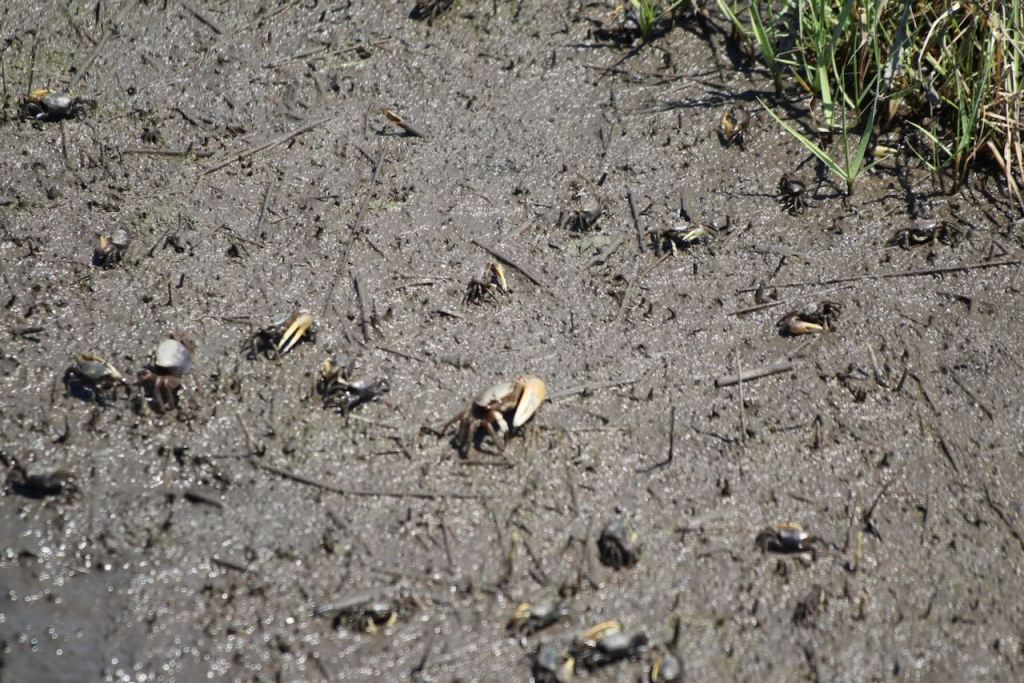 Hermit crabs and glosy ibis
