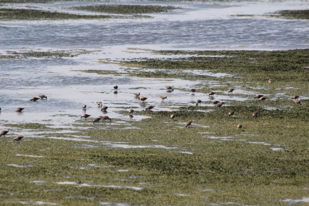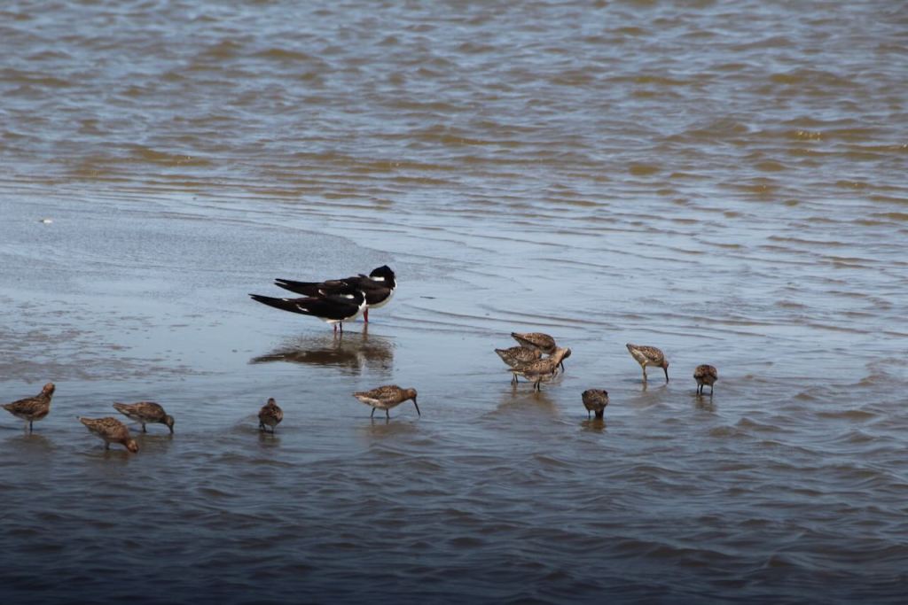 More shorebirds (you need an expert to tell what they are when you are so far away) and a whimbrel.