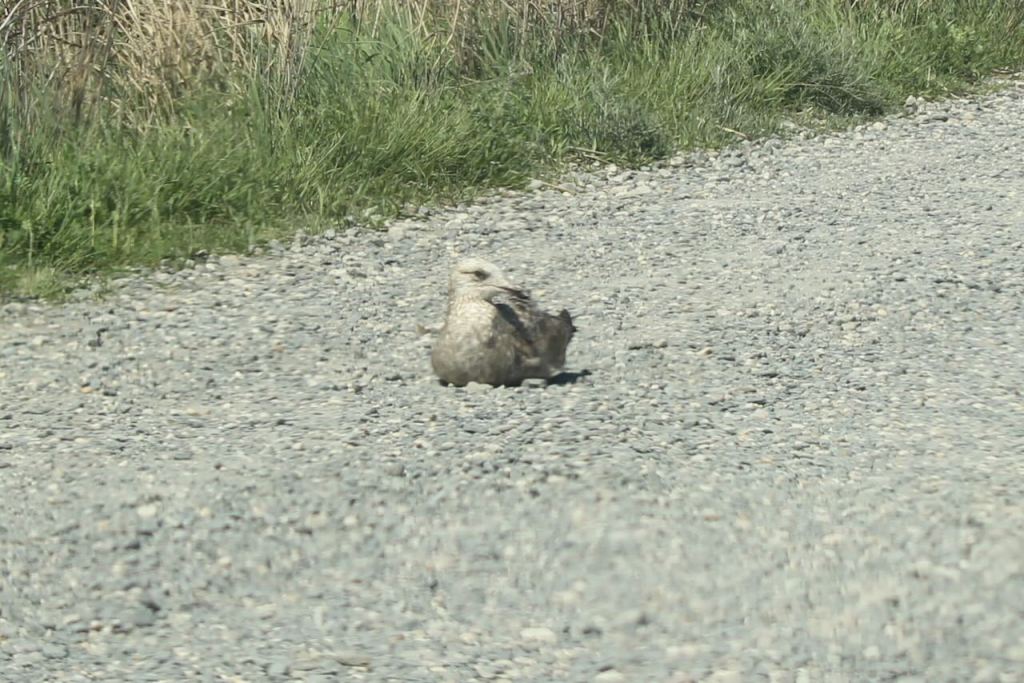 This gull was just sitting in the road – it didn’t bother to move as we drove by – and 50 more shorebirds.